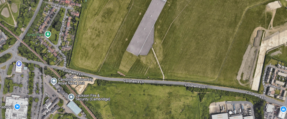 Above – from G-Maps here – the eastern section of Coldham’s Lane