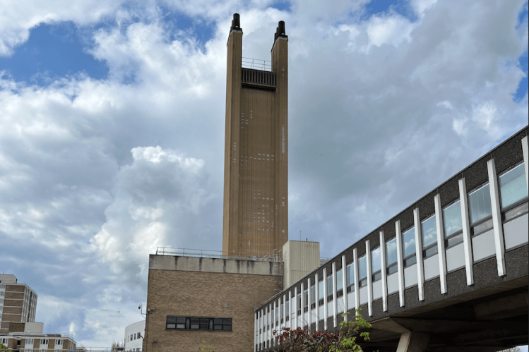 Above – Addenbrooke’s Chimney – taken by me probably after coming out of a meeting, an out-patients appointment, or A&E (there’s an M&S food hall in the concourse)
