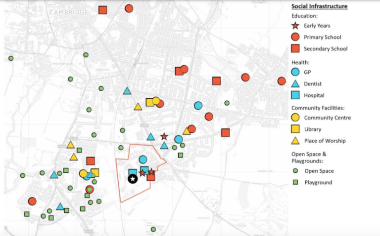 Note Lichfields tried to identify ‘social infrastructure’ near Addenbrooke’s.