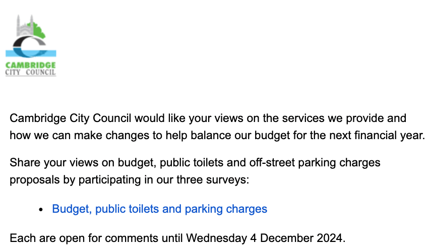 Above – email from Cambridge City Council 23 Oct 2024
