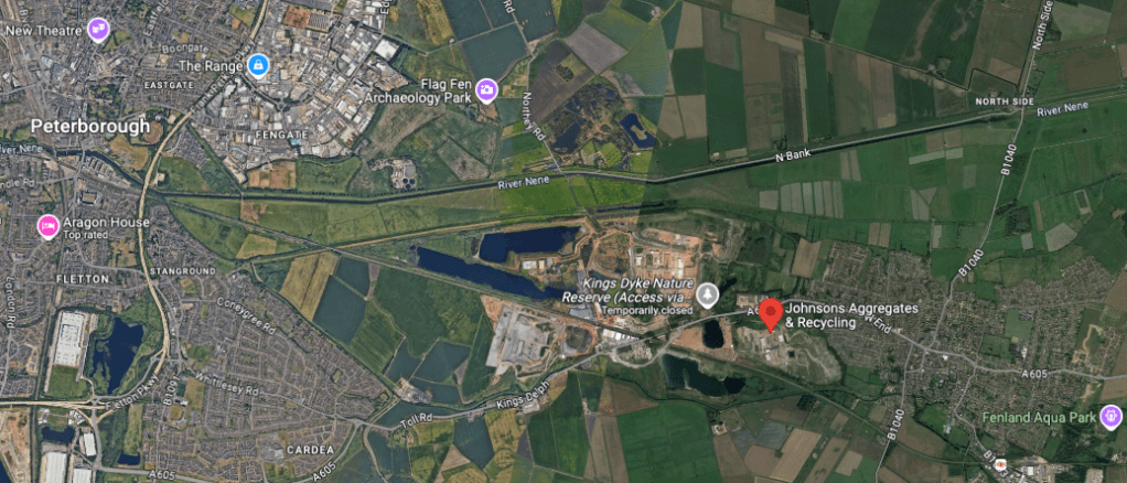 Above – the site on G-Maps next to Whittlesey, with the railway station bottom-right