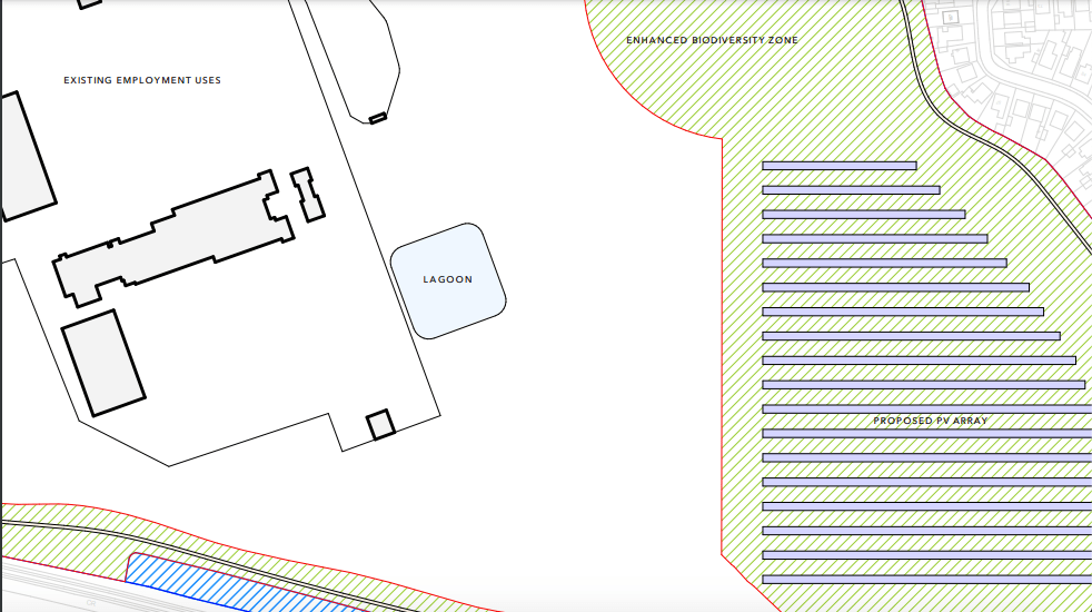 …with an additional array of solar panels on the eastern edge, plus the various biodiversity improvements. (From the Proposed Site Plan documents)