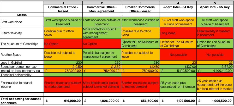 The ‘Total Net Saving’ row at the bottom speaks volumes. As does the concept of an ‘Apart Hotel’ which I find to be utterly miserable because it reduces the number of jobs available for working class Cambridge residents – and for young adults looking for p/t work to complement their studies, and reduces the interaction between residents working and visitors staying over. But that requires central government to develop a sound policy that equalises the playing field/market between family/independent hotels, AirBnB, and apart-hotels. My preference is to support the first of the three, have aparthotels away from the immediate city centre, and put in place massive restrictions on AirBnB so that it returns to the vision of residents letting out their homes for a few weeks a year to get additional income, rather than as a means for the asset rich to get richer at the expense of stable residential communities. (The number of people pulling wheelie suitcases around my neighbourhood and along main roads is a relatively recent phenomenon – in a part of town that previously had only a handful of family run hotels and guesthouses).