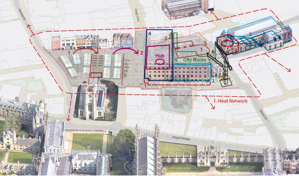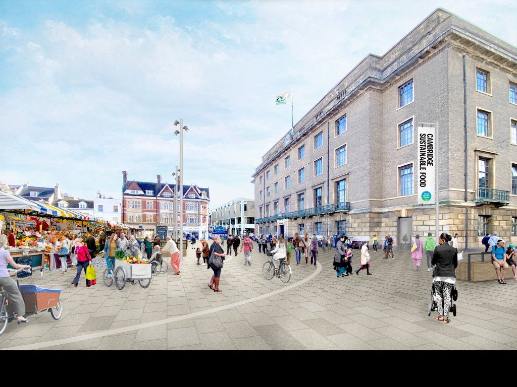 Above – 5th Studio Cambridge, Nov 2024 – vision for Cambridge Market Square outside The Guildhall
