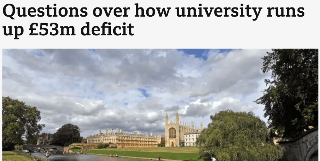 As I mentioned back in October 2024, the University of Cambridge has got huge institutional management issues – ones reflected in the announced deficits which they cannot identify the sources of.