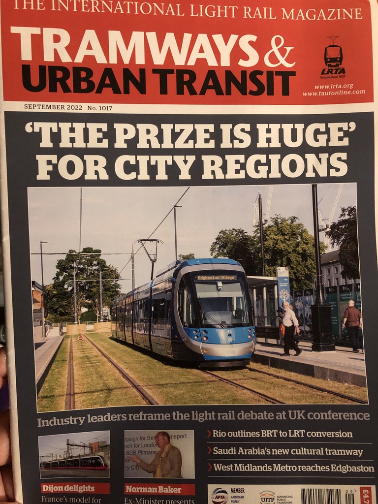 Above – former Transport Minister Norman Baker (LibDems – Lewes 1997-2015) in Tramways and Urban Transit Magazine Sept 2022 (Back copies via LRTA here)