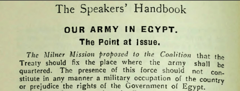Above – Labour Speakers’ Handbook (1923) p134/70pdf. Trouble happening over the border in Gaza? The British Government could literally send a military expeditionary force from its military bases at Alexandria in Egypt to sort things out.