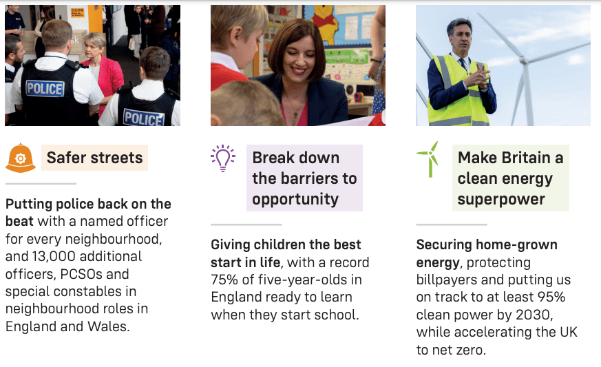 Above – three of the five missions from Plan for Change – HM Govt (2024) presented to Parliament, with a specific high profile target under each one