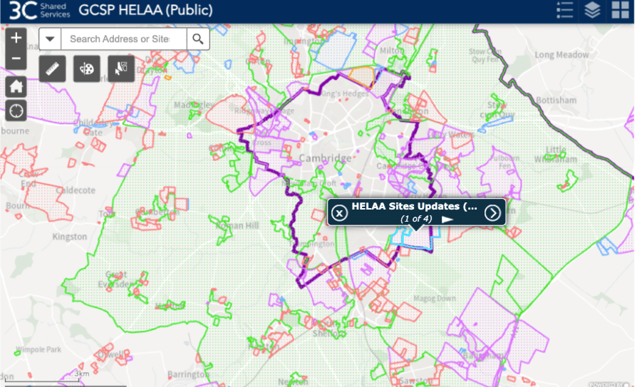 Above – clicking on a shaded box will bring up this icon. “HELAA Sites Updates…” Click on the > icon and you’ll get the pop-up below