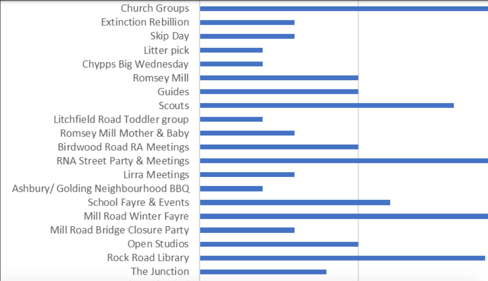 Above – detail of responses when asked: “Which Community Events/ Groups have you attended in the last year?”