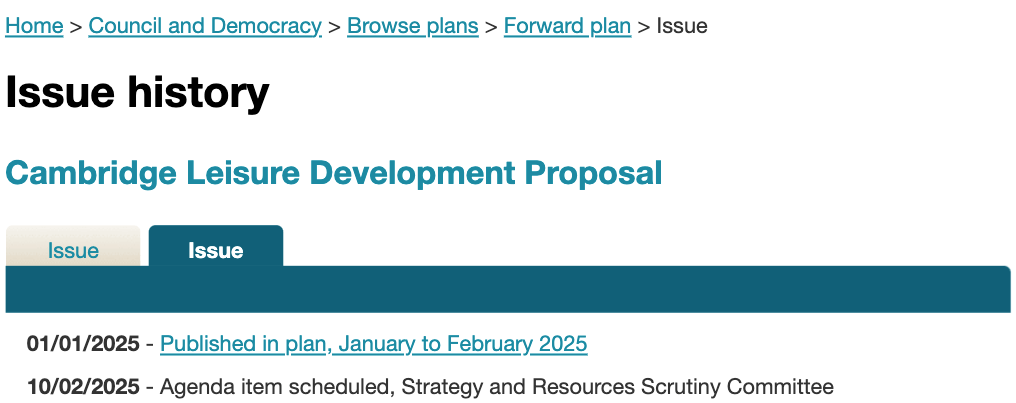 Above – from Cambridge City Council’s forward plan, in which there are a few other things you may want to look at.