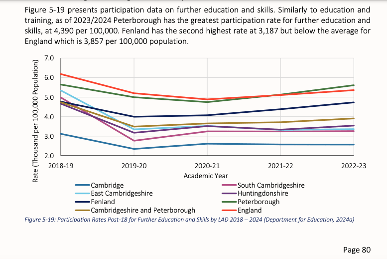 I’m not sure what’s happening with the Cambridgeshire and Peterborough comparators but the participation rates are off the scale for the wrong reasons – are we really saying that fewer than 6% of adults are participating in further education and skills? It doesn’t feel like we’re comparing like with like.