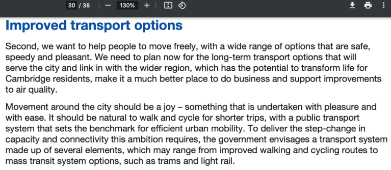 At the moment, all that is happening is that the debates of 2017 and of 2021 are being had all over again but with absolutely zero progress having been made because central government has dithered over whether it wants to make such a radical choice on sustainable transport. This applies both to Conservative and Labour governments. Michael Gove and colleagues had the chance to make substantial policy statements on this but could not get past their fantasy vision statements. I picked up on one of them in March 2024 in Michael Gove’s Case for Cambridge in this blogpost.