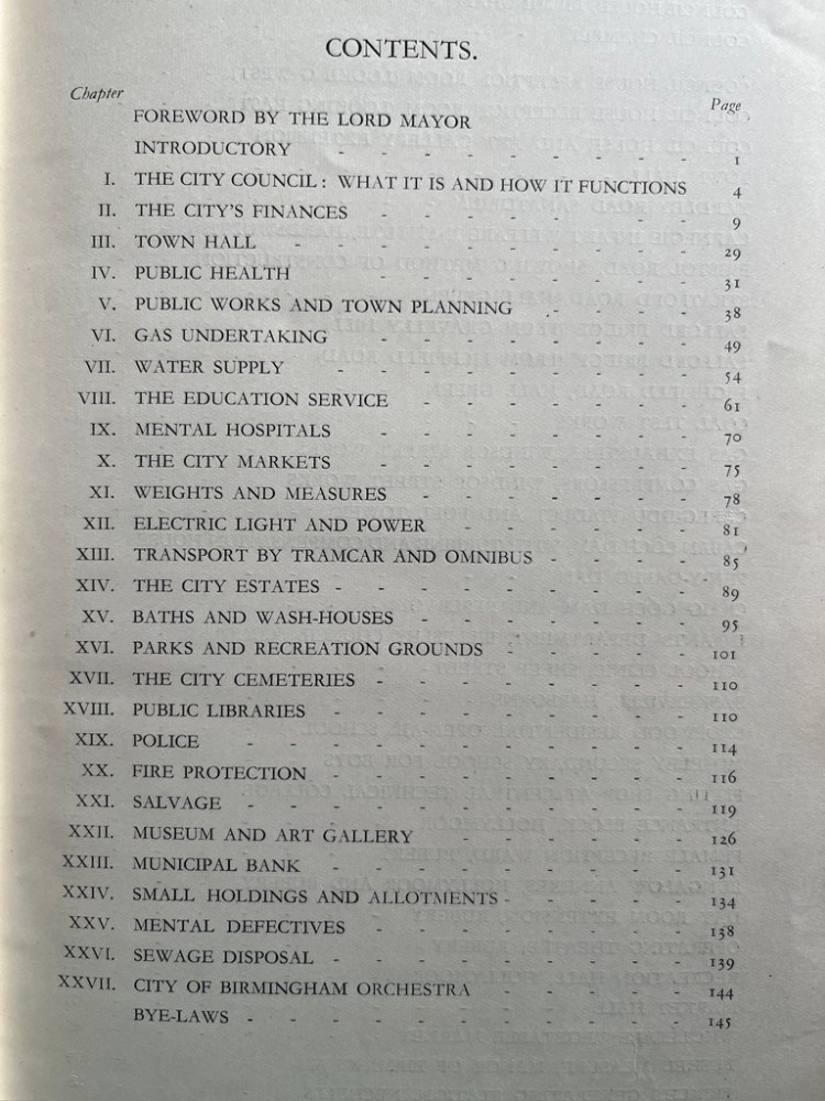 I’ve digitised my copy here. When you browse through the contents list, the huge range of services – remember this pre-dates the NHS (and universal equal suffrage) – gives us a snapshot of the ambitions that previous generations had for public services. Something recent generations of senior politicians and ministers seem to have forgotten