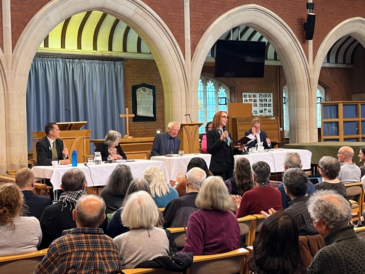 Above – at the start of the event on 23 April 2025 at the Wesley Church on Christ’s Pieces