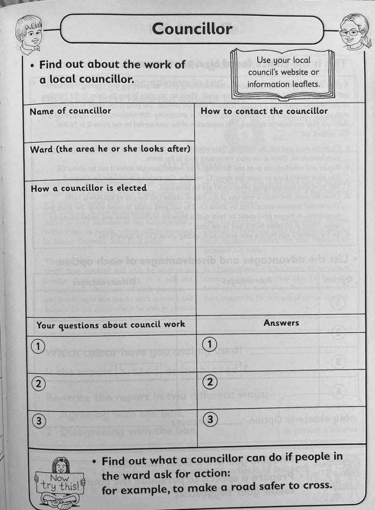 In preparation for the event, I printed out a series of A3 posters along with packs of A5 photocopied worksheets from the Developing Citizenship book published 20 years ago. The photocopiable templates still work well today. Written at the top of ‘How to contact your councillor’ was the website https://www.writetothem.com/