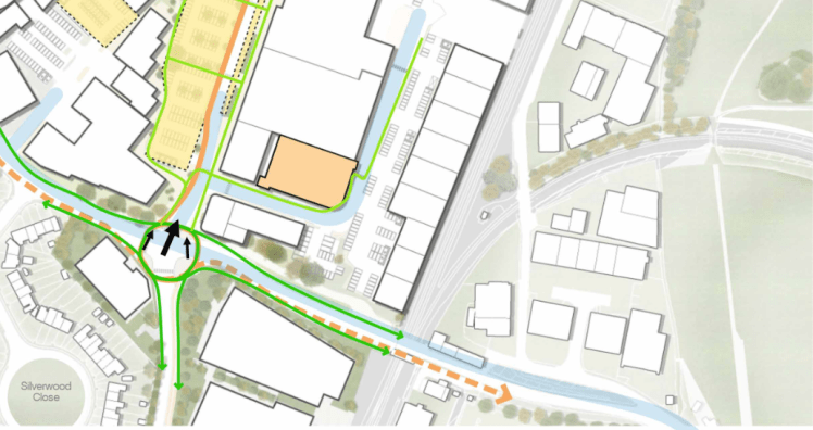 Above – you can see the transport plan map – and also the cul-de-sac where the Silverwood Close residents live.