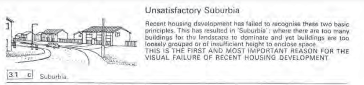 Above – Essex CC (1973) p33 – describing how and why suburban low density sprawl feels ‘wrong’