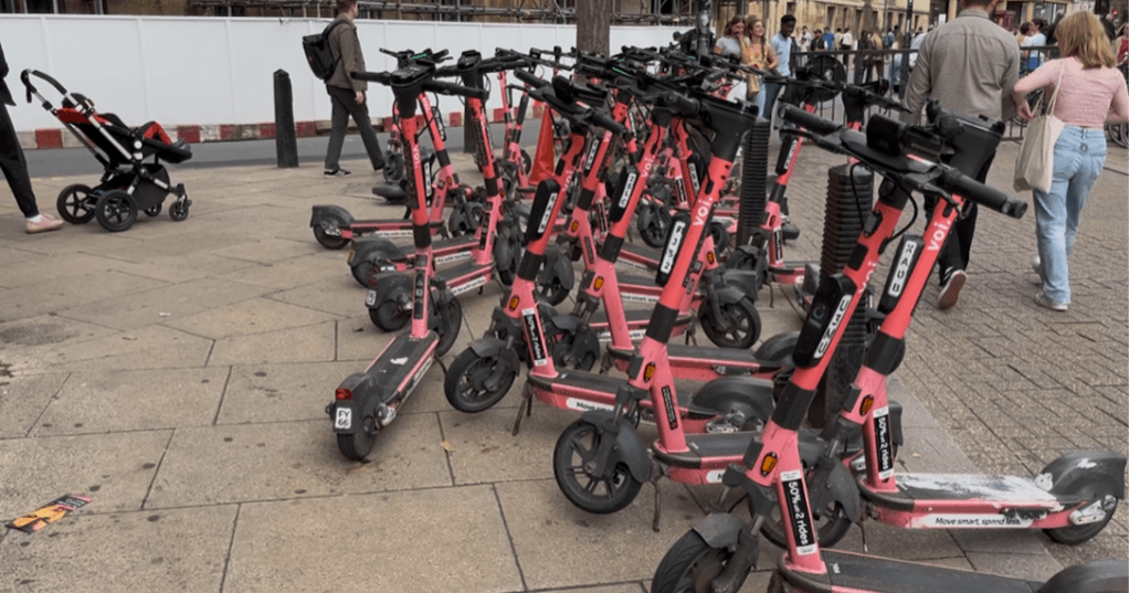 Above – e-scooter chaos in Cambridge outside Lloyds Bank/Hobson Street, and by the railway station on Sat 02 Aug 2025