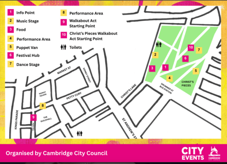 I think that’s where Cambridge City Council struggled with trying to identify a suitable lower-cost alternative to the Big Weekend, which I hope the new unitary council will be able to bring back. The Big Weekend was very specifically a big free summer weekender on Parker’s Piece in the city centre that not only celebrated the summer but also provided spots for local musical, performing arts, and artistic talents to showcase their works, with a headline act being the ‘attention-grabber’.