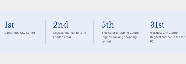 Above – Cambridge is at the top, and Bluewater is at number 5.