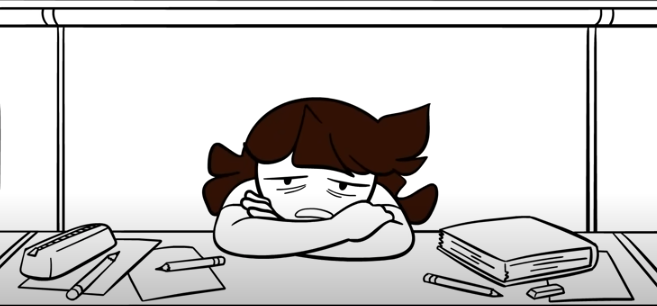 Above – A familiar looking scene from school/college/university whenever I was bored and/or fatigued. By Jaiden Animations in “I found out I have ADHD”.