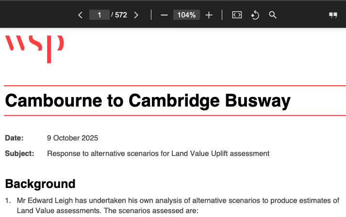 They go into the report at CD29-60 (see here, scroll down) and it’s a 572 page report by the consultants WSP which incorporated a major consultants report by Aspinal Verdi for South Cambridgeshire District Council from 2021