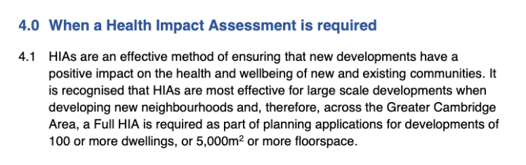 One planning document that might be relevant to the above is The Greater Cambridge Health Impact Assessment Supplementary Planning Document, approved in April 2025.