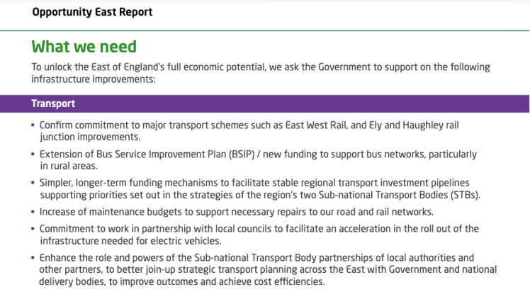 The big transport item being turned down being the refusal to upgrade the railway junction at Ely, which requires almost £500million of funding.