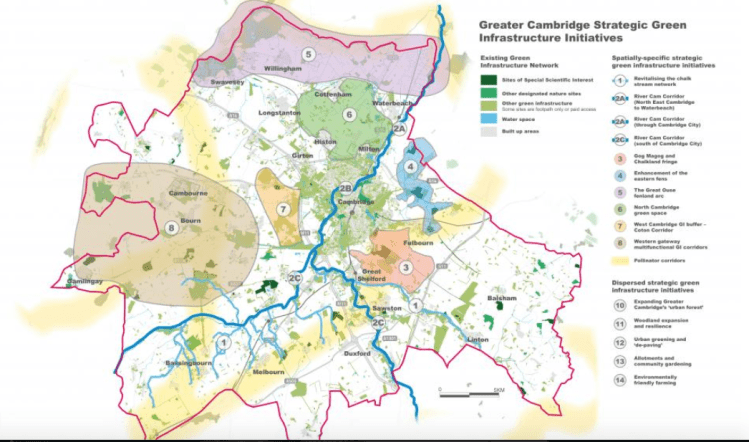 Above – a map of the Greater Cambridge Strategic Green Infrastructure Initiatives