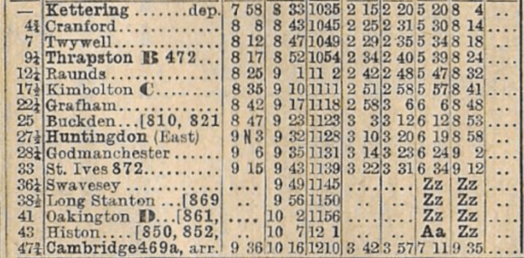 Above – from the RCTS page on the Kettering – Huntingdon – Cambridge line Timetable 1939
