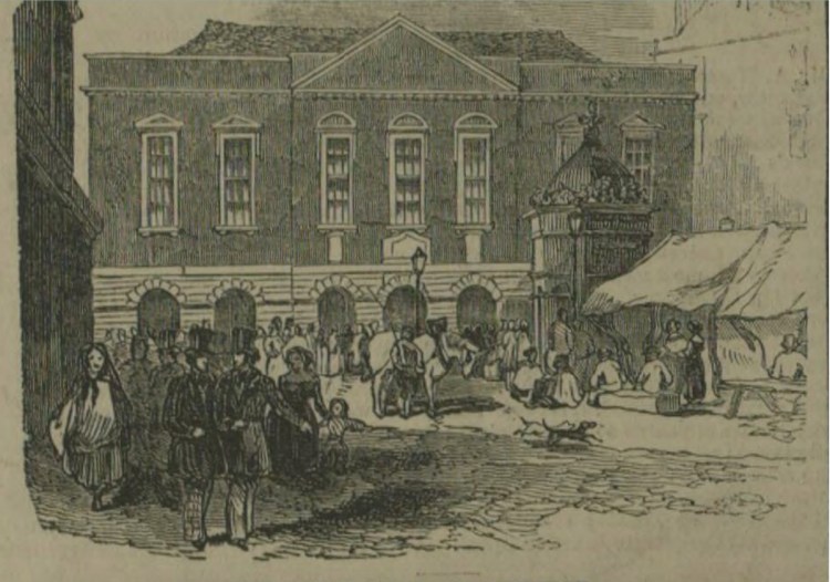 Above – Cambridge Guildhall and Market Square from Illustrated London News 1845