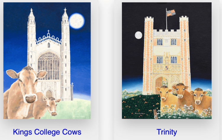 Above – Kings College Cows, and Trinity, by Maureen Mace which you can purchase here