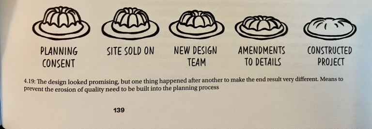 It’s a splendid and wonderfully-illustrated book – and for those of you looking to ask lots of questions of the planners, developers and architects on the future of our city and county, it also provides you with some of the language and terminology behind the illustrations to unpick any of the negative things they try to ‘value-engineer out’.