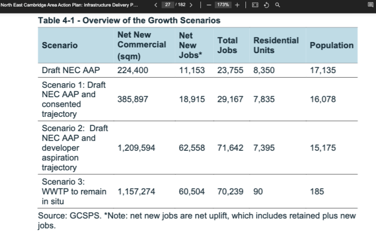 Above – from Appendix D of the meeting papers where Cambridge City Councillors assessed the North East Cambridge Area Action Plan.