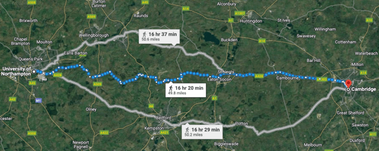 Given that Bedford-Cambridge is already being built, the geographical distance ‘as the crow flies’ from Bedford to Northampton is around 20 miles, and much of the old Bedford-Northampton railway line is still there. (Have a browse of the old rail network in England here). Interestingly, the are ongoing calls for the reconnection of the two historic county towns by rail. While the impacts may not be massive, the indirect impact of such a rail link would enable a small number of workers in the Cambridge bubble to commute in from the villages between the two county towns by rail, while at the same time boosting passenger numbers at the existing stations.