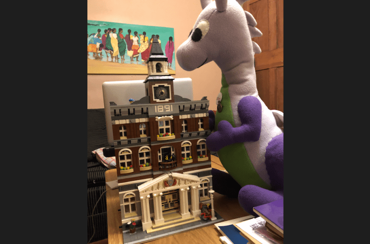 Above – Puffles the Dragon Fairy would not be allowed to submit this town hall design because it’s from an official Lego set. Even though there is far more variety and detailing than in your average box-like development from industry.