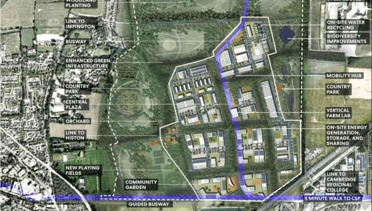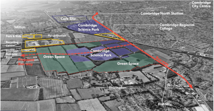 Sadly their main consultation site https://cambridgescienceparknorth.co.uk/ does not contain the document linked above