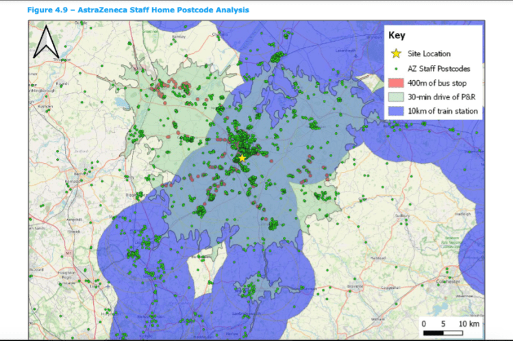 - Approximately 74% of current Cambridge-based AstraZeneca staff live within 10km of a train station served by trains to/from Cambridge.”