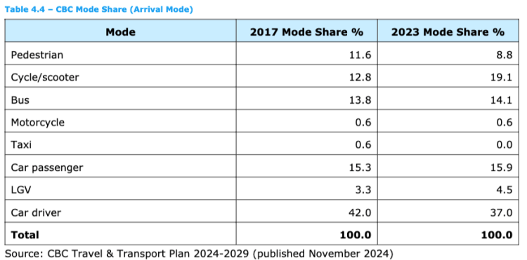 The above table shows that for AZ staff over half are commuting in by private car – albeit around 16% of commuters are doing so as car passengers rather than car drivers for 2023, 37% of commuters being behind the steering wheel.
