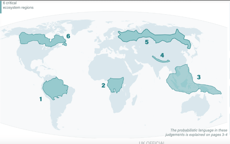“Global ecosystem degradation and collapse threaten UK national security and prosperity. The world is already experiencing impacts including crop failures, intensified natural disasters and infectious disease outbreaks. Threats will increase with degradation and intensify with collapse. Without major intervention to reverse the current trend, this is highly likely to continue to 2050 and beyond.”