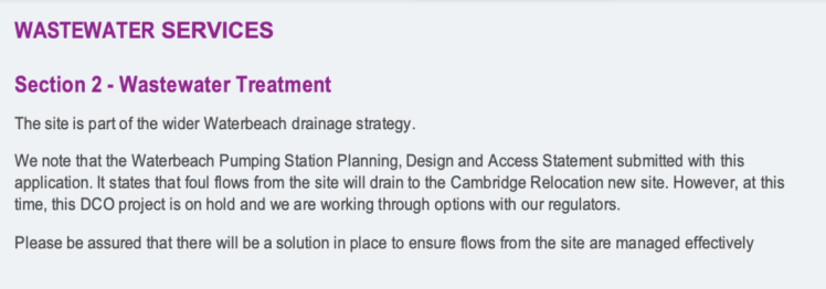 It relates to the Waterbeach New Town (see the developer’s website at https://waterbeach.co.uk/) which is a core component of Cambridge and South Cambridgeshire’s housing growth. If the whole thing comes grinding to a halt, then there will be a huge gap in the housing targets – and the emerging local plan may be judged as unsustainable. Which is why we’re in this strange situation of a privatised utility potentially making or breaking the draft local plan. The only people who can resolve this are ministers.