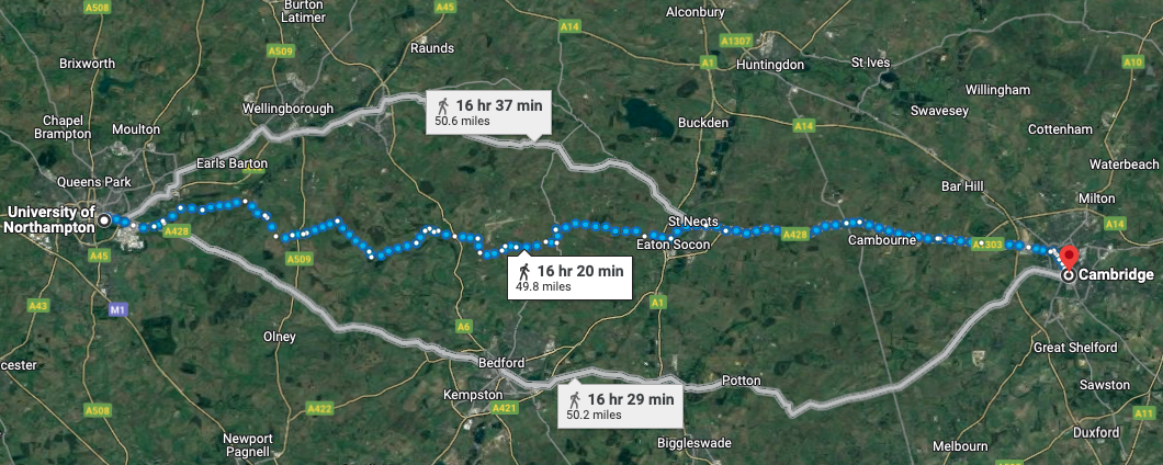 Above – Cambridge-Northampton on G-Maps in CTO 28 May 2023