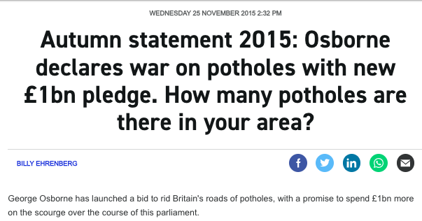 And it was also the same Chancellor who announced more pothole funding some three years before in 2011.