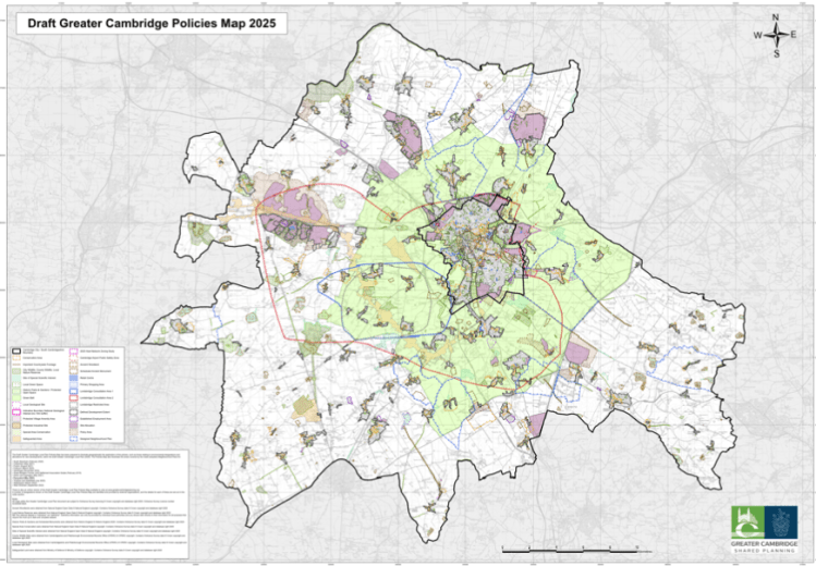Above – Detail from the Draft Greater Cambridge Local Plan: Policies Map ((2025) 13.14 MB) in the Local Plan Document Library. See also G-Maps here.