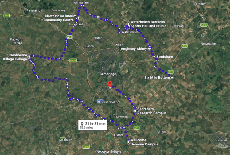 – there’s nothing to stop the proposed Grange Farm development by the Babraham Research Campus being connected, and thus heading towards the Cambridge Biomedical Campus – something that would then negate the need for the proposed and controversial CSET Busway which terminates near Babraham at a proposed new Park & Ride.