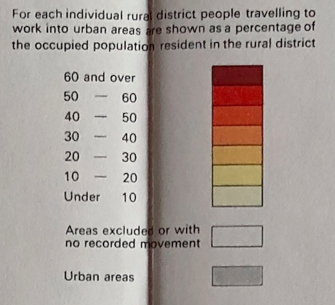 The context for the recommendations in the 1969 Royal Commission that Lord Redcliffe Maud chaired included the rapidly-extending distances that employees were commuting to get to/from work. Part of the evidence base compared the figures of 1921 with 1966, asking what percentage of residents in rural districts commuted into urban areas for work.