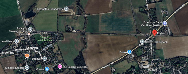 Above – Foxton, and Shepreth (the latter with the wildlife park, the former with the long-called-for bridge taking the A10 over the railway line)