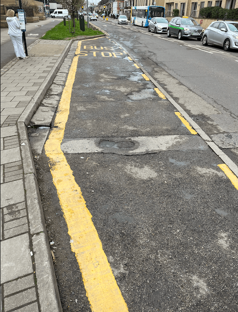 Above – also in the vicinity of the Cambridge Leisure Park is the pot-holed bus stop, and the buildings in The Marque development going mouldy up top – a mix of poor design, poor construction, and poor maintenance.