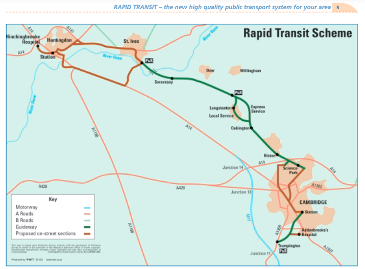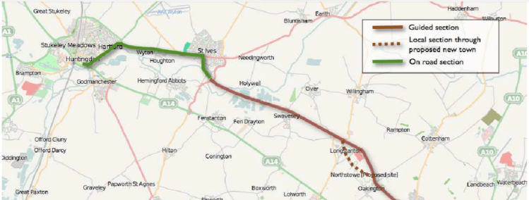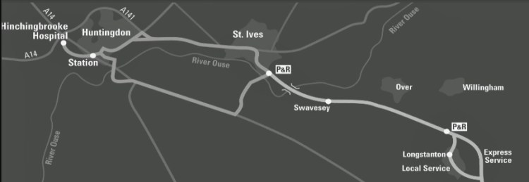 - A guided bus system utilising the former Cambridge to St Ives rail corridor as its core;